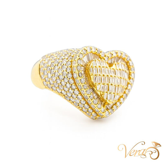 10K Yellow Gold Heart Rolo Ring with 4.00 ct Natural Diamonds, Size 7, 10g