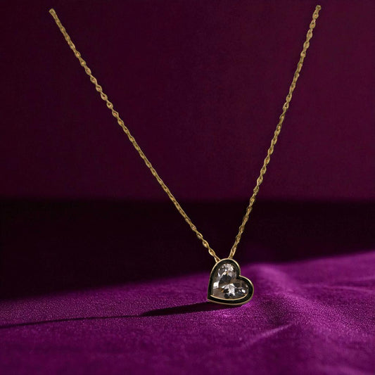 14K YG Heart Charm Cubic Zirconia Necklace – 17"