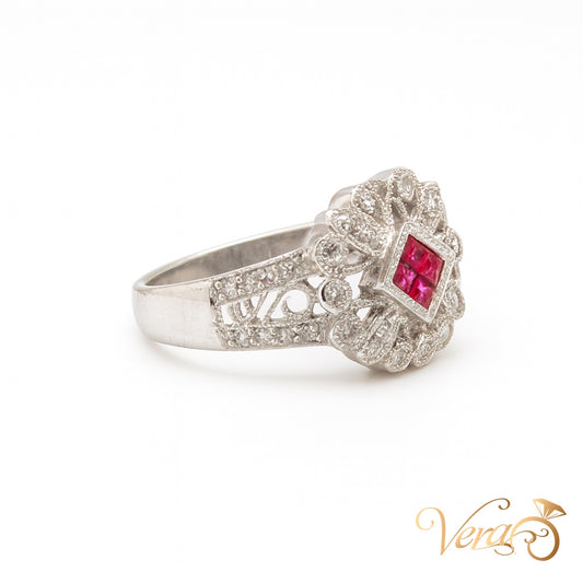 18K White Gold Floral Rolo Ring with 0.30 ct Natural Diamond, Size 6.75, 5.76g