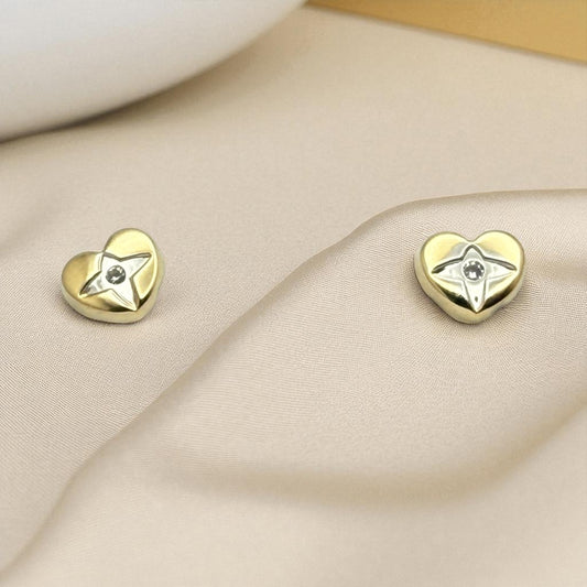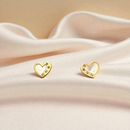 14K YG Heart Mother of Pearl & Cubic Zirconia Earrings