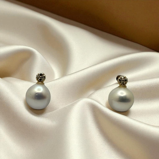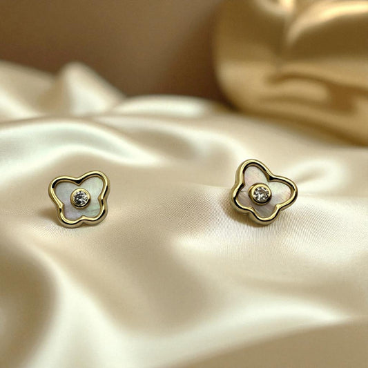 14K YG Butterfly Mother of Pearl & Cubic Zirconia Earrings