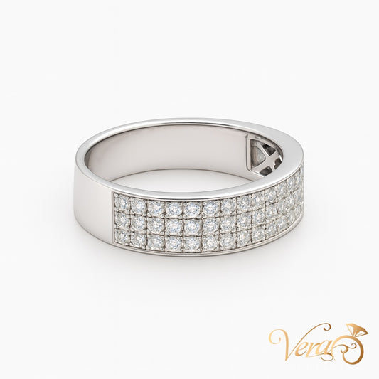 10K White Gold Pavé Diamond Band Ring with 2.50 ct Natural Diamonds, Size 7, 5.54g