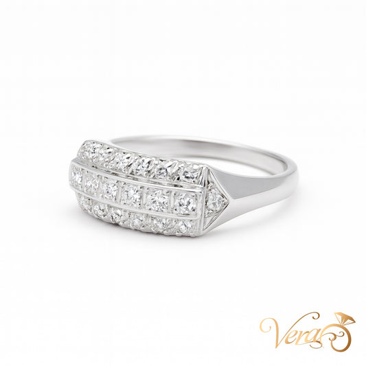 14K White Gold Diamond Band Ring with 0.15 ct Natural Diamonds, Size 7, 1.1g