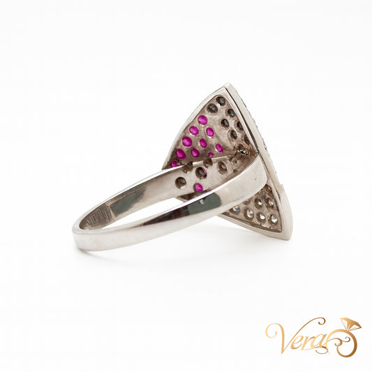 14K White Gold Trilliant Cut Ring with Cubic Zirconia (CZ), Size 7.25, 3.2g