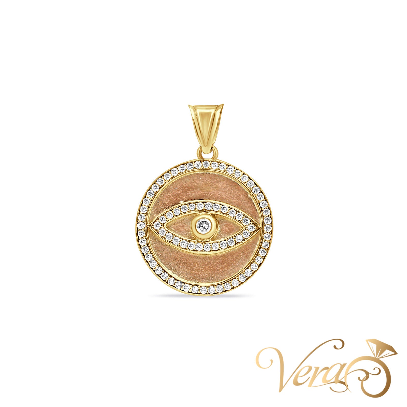 10K Yellow Gold Evil Eye Medal Pendant with CZ