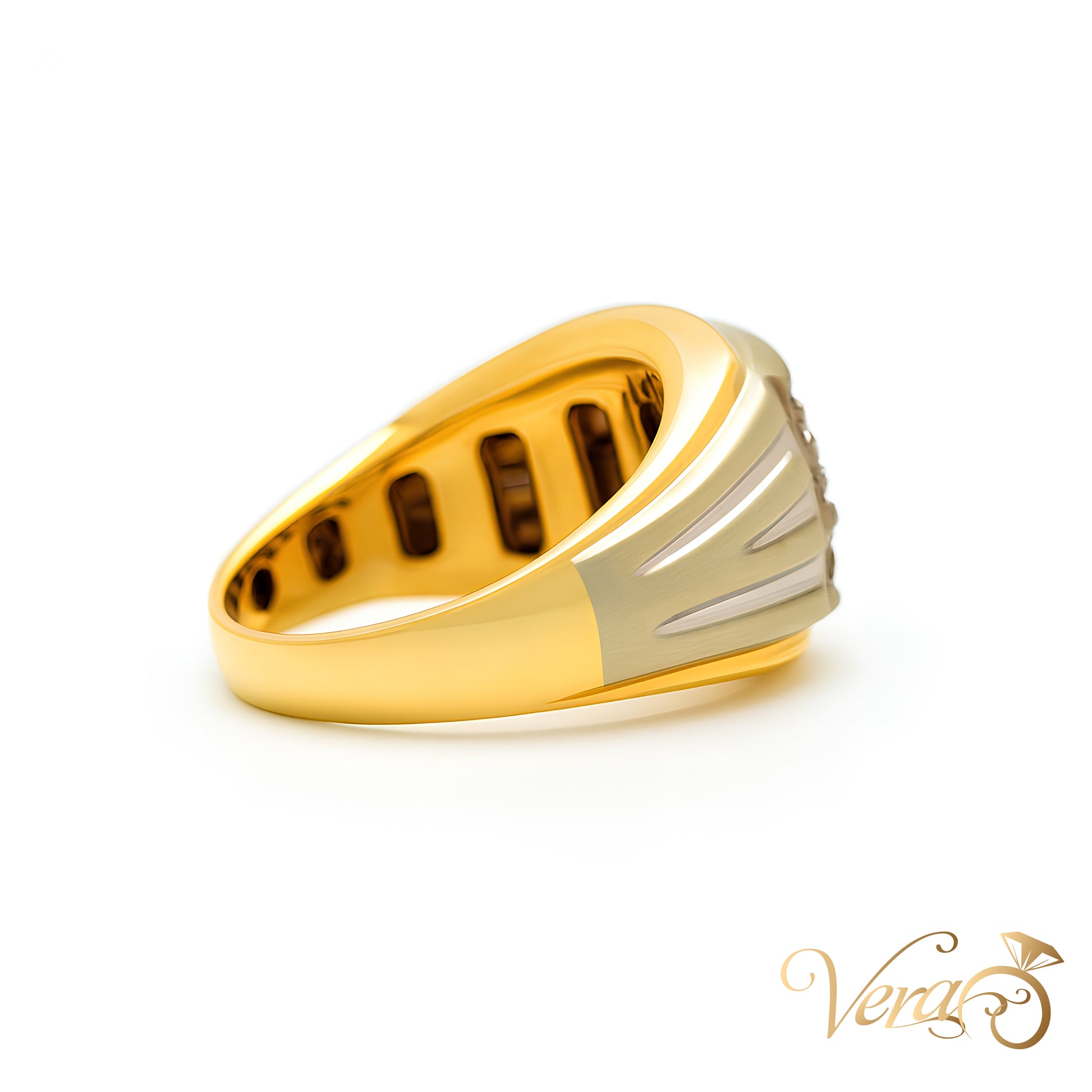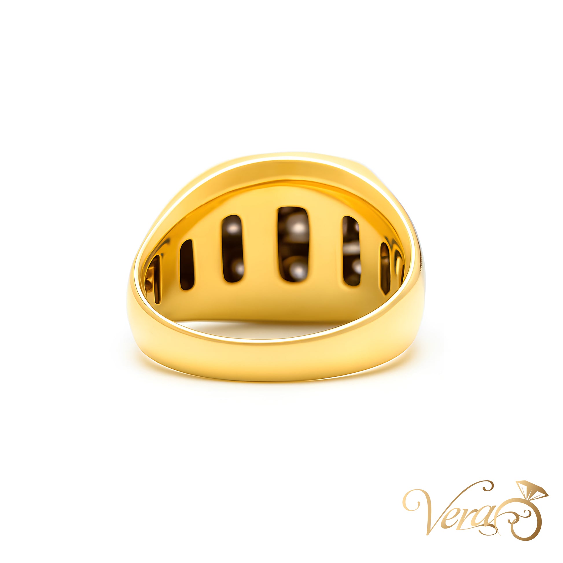 This vertical bar ring is crafted in 10K yellow gold, set with approximately 1.20 carats of natural diamonds that bring brilliance and elegance to its sleek design. Sized at 10 and weighing 7.9 grams, it combines contemporary style with timeless luxury, making it a standout piece for any collection.
