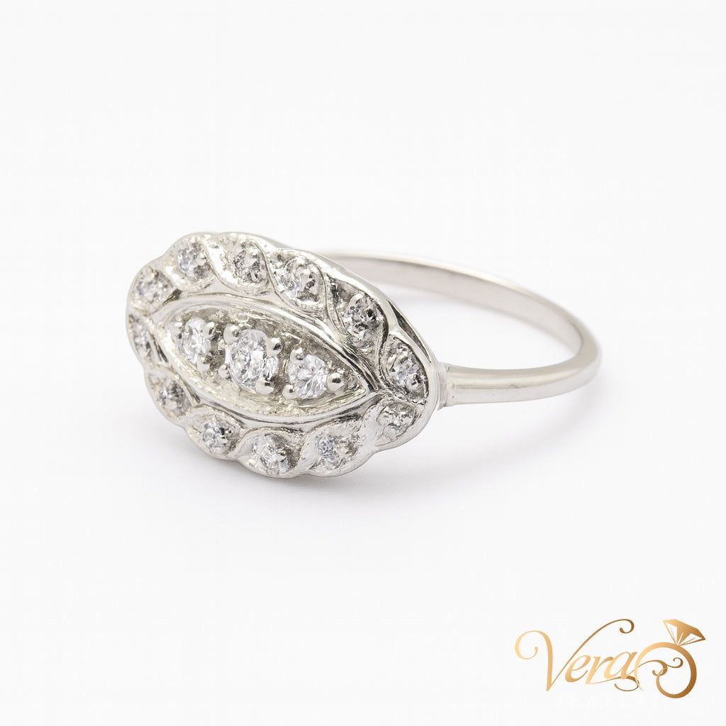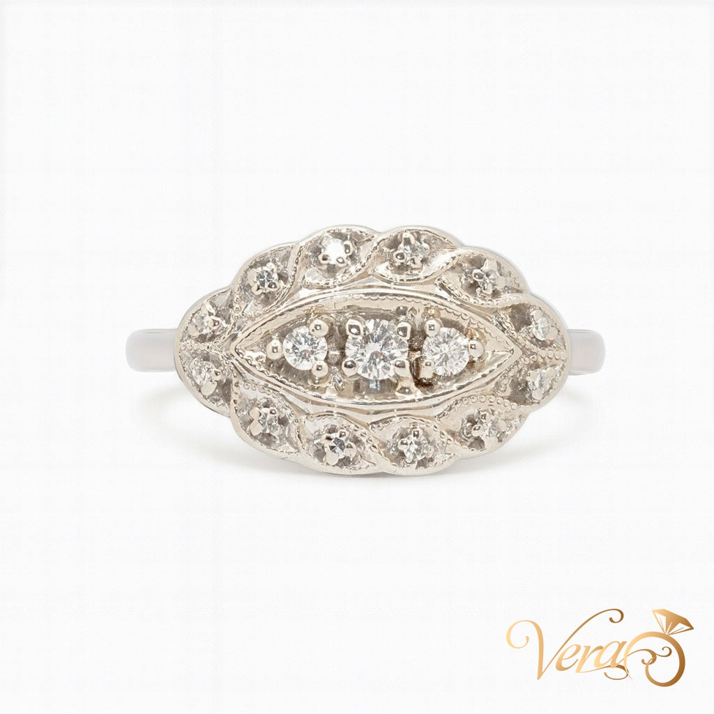 14K White Gold Diamond Cluster Ring with 0.25 ct Natural Diamonds, Size 7.75, 3.4g