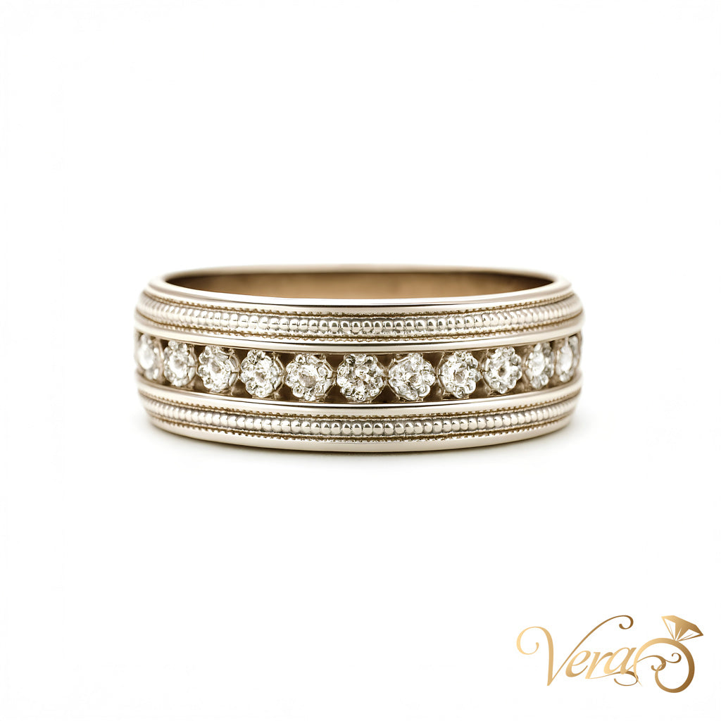 14K White Gold Wedding Band with 0.60 ct Natural Diamonds Size 8.75, 5.1g