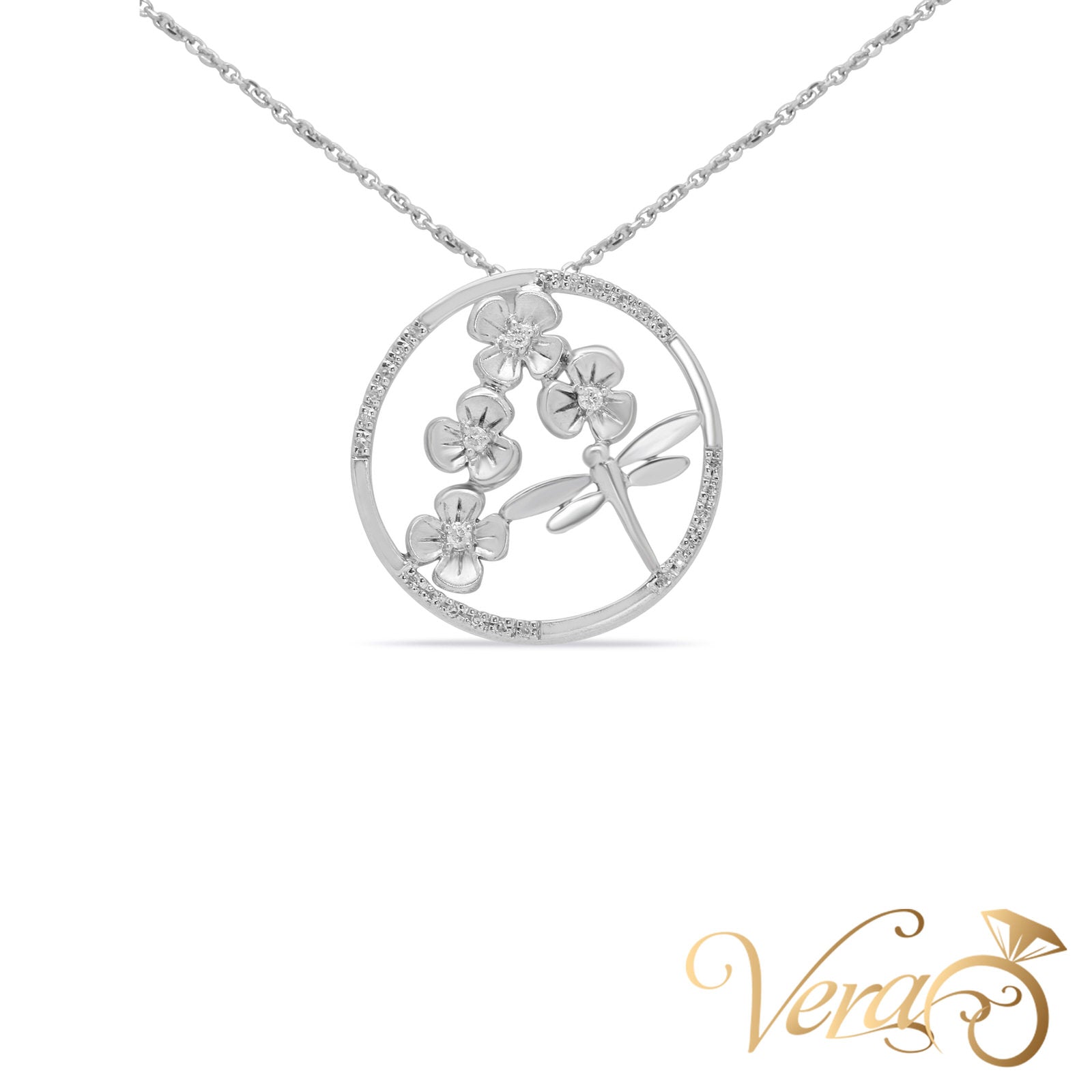 14K White Gold Floral Pendant with Chain & 0.10ct Diamond – 16"