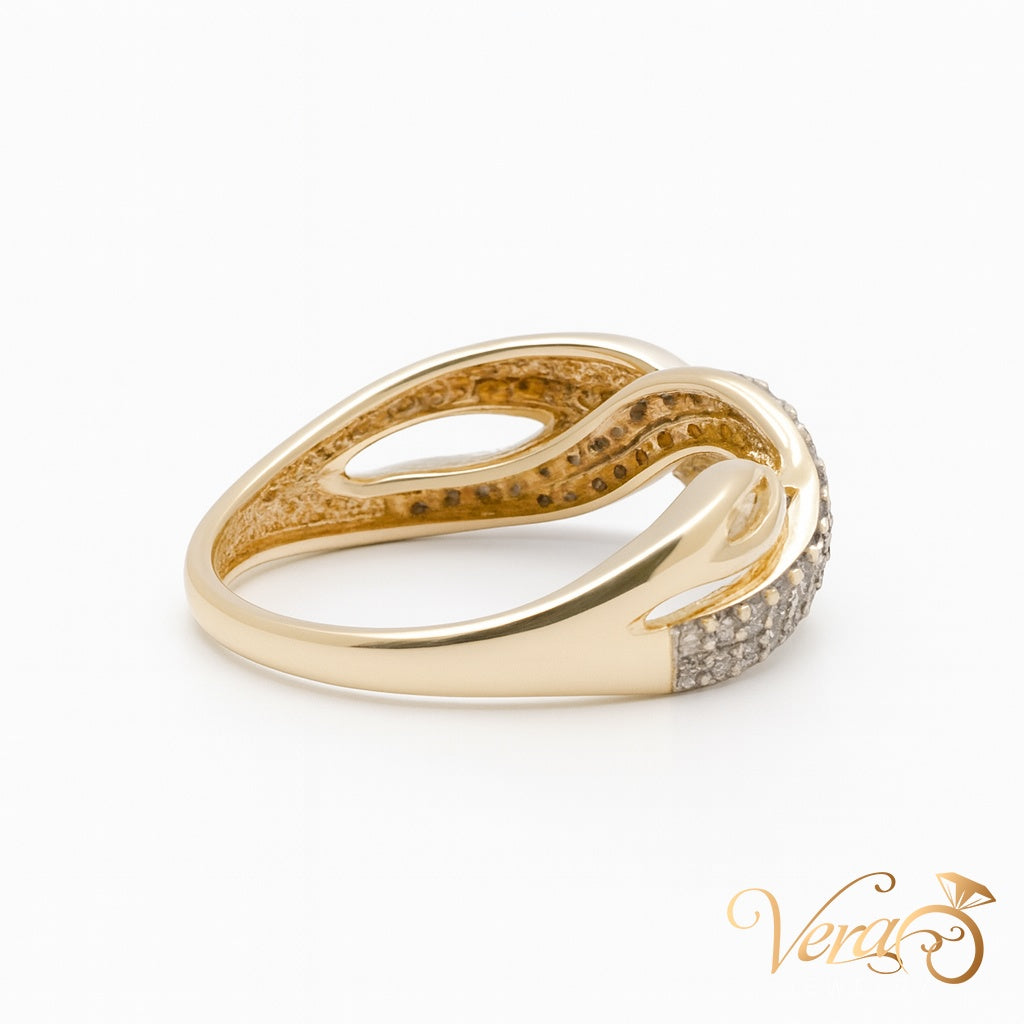 14K Yellow Gold Tangled Band Ring with 0.55 ct Natural Diamonds, Size 7, 3.25g