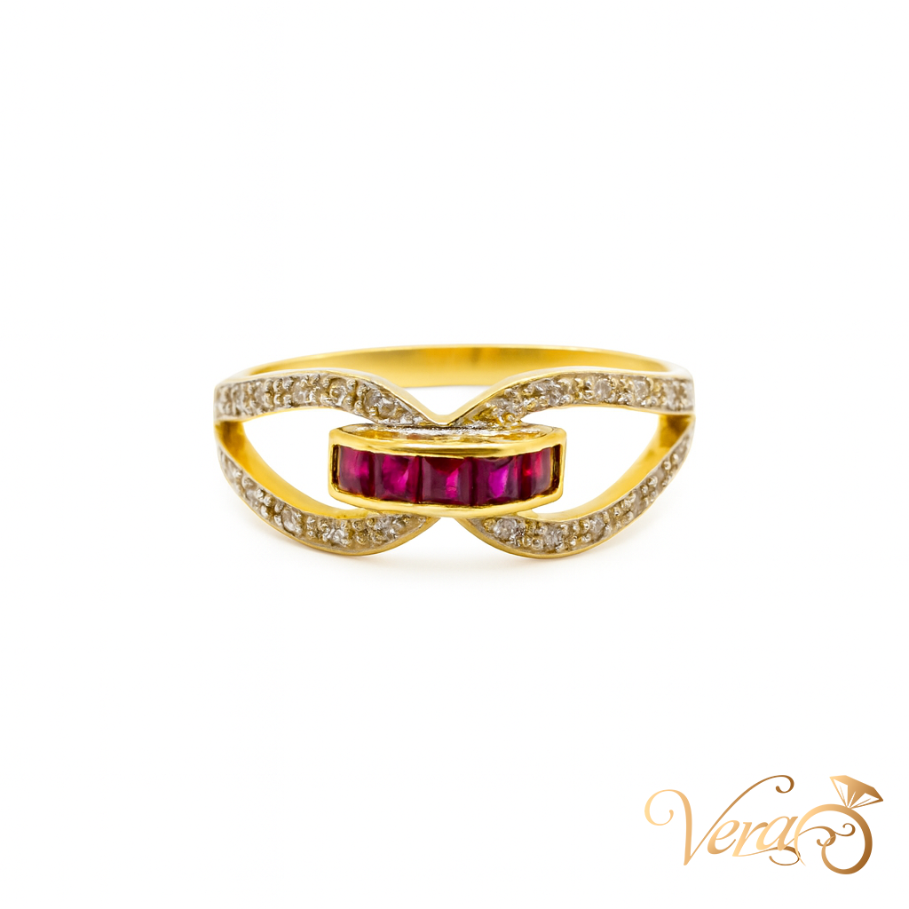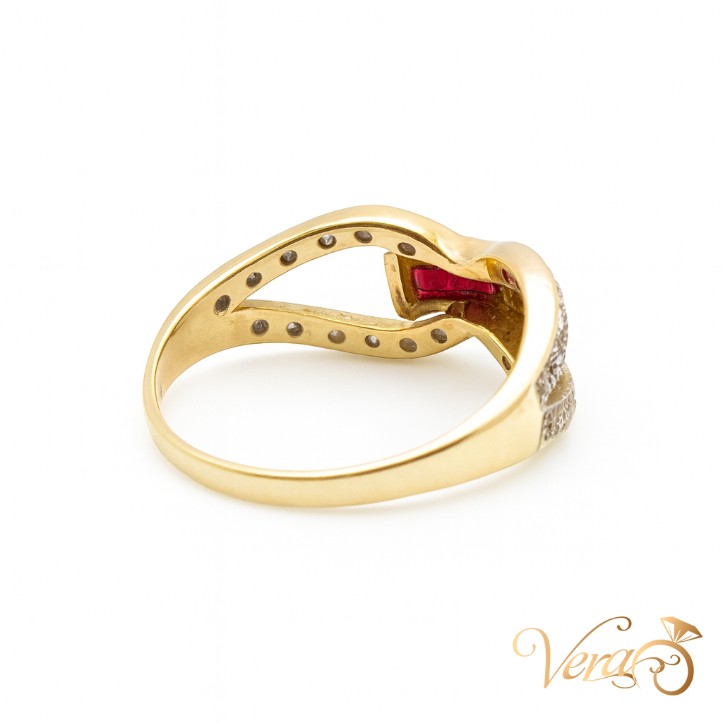 14K Yellow Gold Vintage State Ring with 0.45 ct Natural Diamonds, Size 6, 2.22g