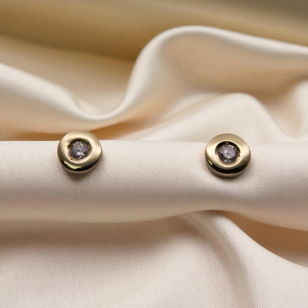 These classic circle earrings are crafted in solid 14K yellow gold and accented with sparkling cubic zirconia stones for a touch of brilliance. Weighing 0.8 grams, they offer timeless style and versatility, making them perfect for both everyday wear and special occasions.