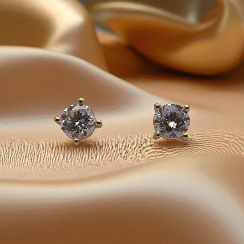 These elegant 4-prong stud earrings are crafted in solid 14K yellow gold and feature lab-created diamonds totaling approximately 1.04 carats. Weighing 1.2 grams, they offer timeless sparkle and classic style, making them perfect for everyday elegance or special occasions.