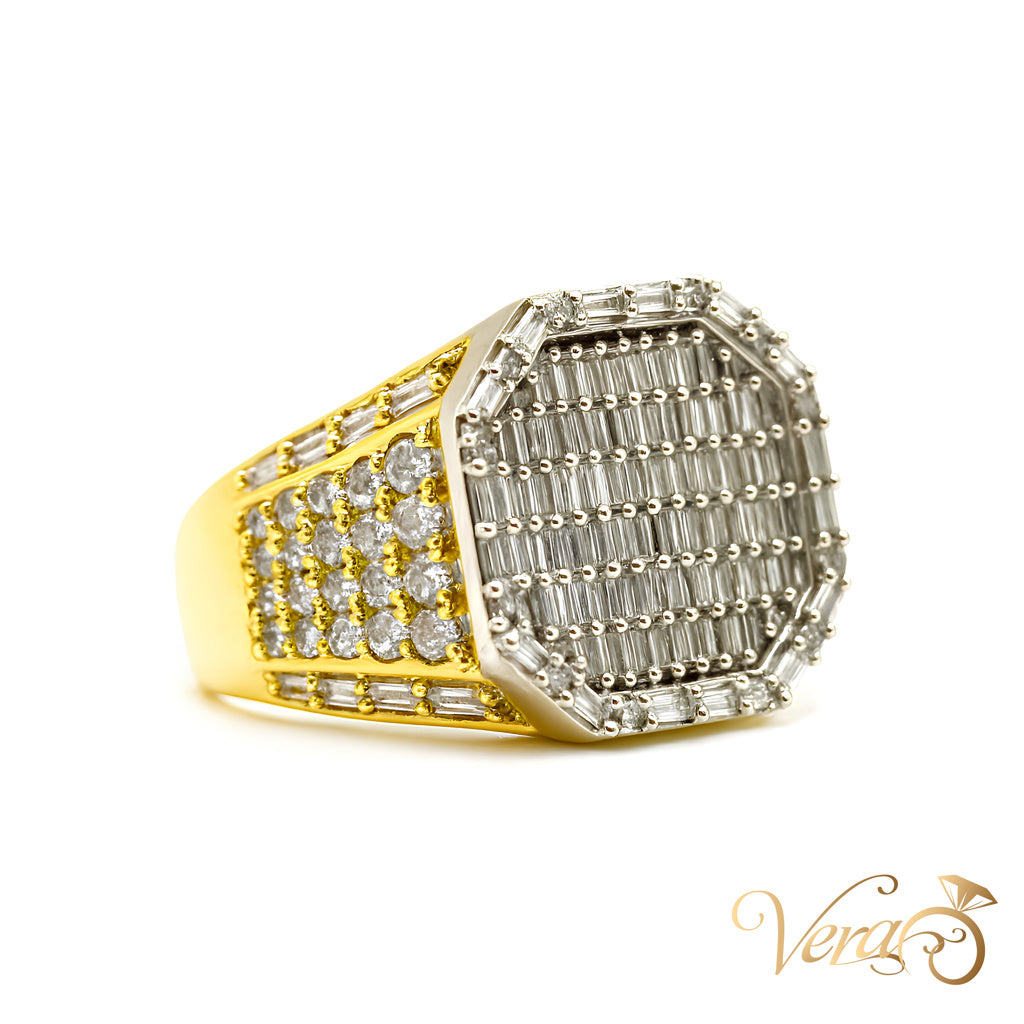 14K Yellow Gold Square Rolo Ring with 3.00 ct Natural Diamonds, Size 10, 13.6g