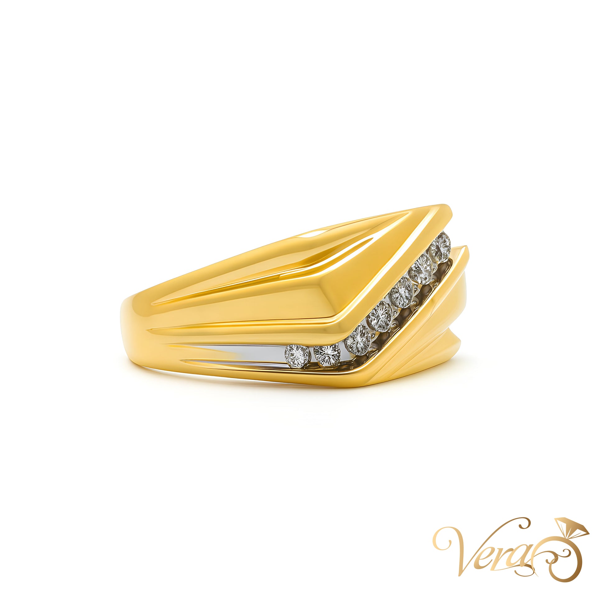 This refined diagonal channel ring is crafted in 14K yellow gold and set with approximately 0.40 carats of natural diamonds arranged in a sleek diagonal channel setting. Sized at 10.25 and weighing 8.5 grams, it offers a bold yet sophisticated look. A timeless design that combines durability, brilliance, and modern elegance.