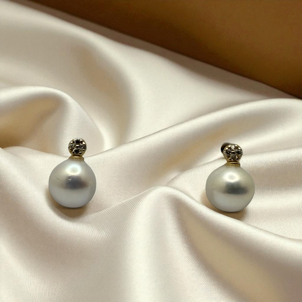 These elegant pearl earrings are crafted in solid 14K yellow gold and accented with sparkling cubic zirconia stones for added brilliance. Weighing 0.9 grams, they offer a timeless blend of classic pearls and shimmering accents, making them perfect for both everyday wear and special occasions.