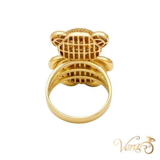 14K YG Teddy Bear Ring with Cubic Zirconia