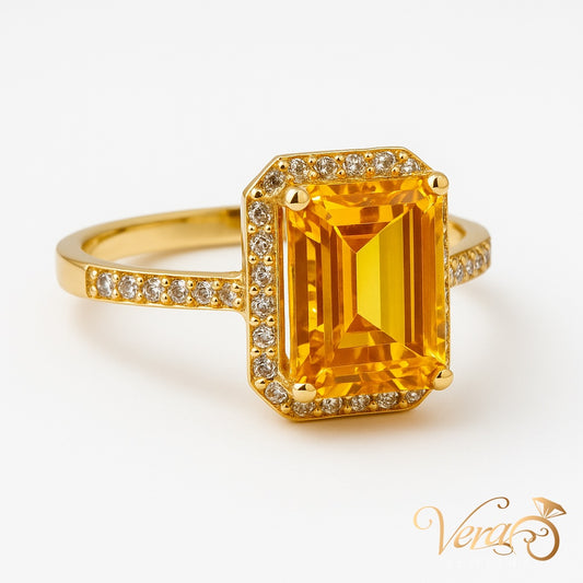 14K YG Cocktail Ring with Yellow Topaz and Cubic Zirconia