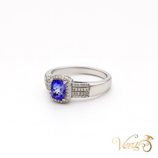 14K White Gold Tanzanite Cocktail Ring with 0.60 ct Natural Tanzanite, Size 8, 5.43g